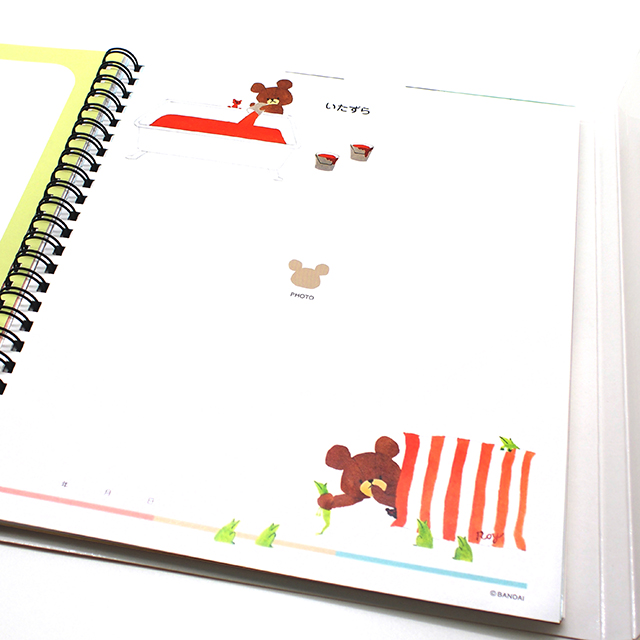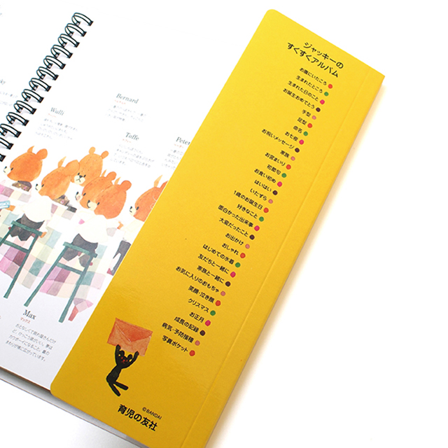 くまのがっこうの世界が育児記録になりました。 11ぴきのおとこのこと、1ぴきのおんなのこのくまのこの可愛いイラストが満載!写真ポケットは大きめサイズでハガキも入ります。20枚収納可能。